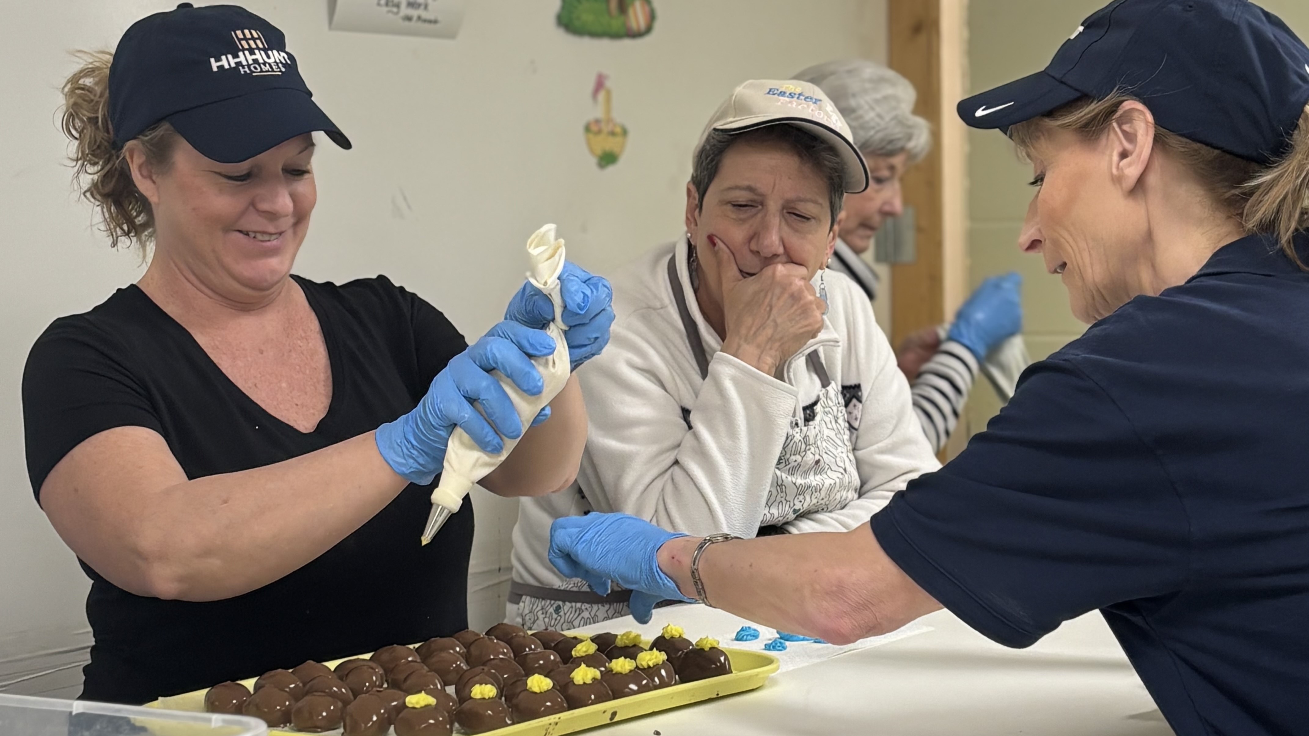 HHHunt Homes of Hampton Roads joined Beech Grove United Methodist Church for its annual Easter Egg Factory fundraiser, a cherished tradition just down the road from Creekside Reserve. Since 1979, the church has handcrafted homemade chocolate eggs in flavors like peanut butter, butter cream and coconut, drawing visitors from all over. Our team of 10 spent a fun day shaping, dipping, decorating and packaging these treats while connecting with longtime residents who shared stories and knowledge of the area. It was a rewarding experience, and we look forward to returning next year!
